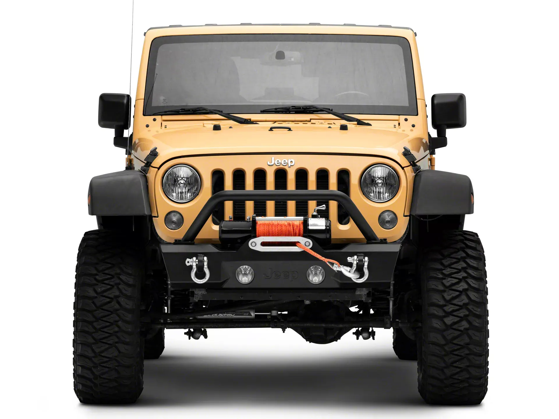 Light up The Night. Light up The Night. This Jeep Licensed by RedRock Stubby Front Bumper is the perfect solution for night-time trail runners, as it features two OE sized fog light mounting points that allow you to easily swap over your Wrangler’s factory fog lights. The over-rider hoop also includes two mounting tabs for use with any aftermarket auxiliary lights to ensure complete confidence in any night time adventure.